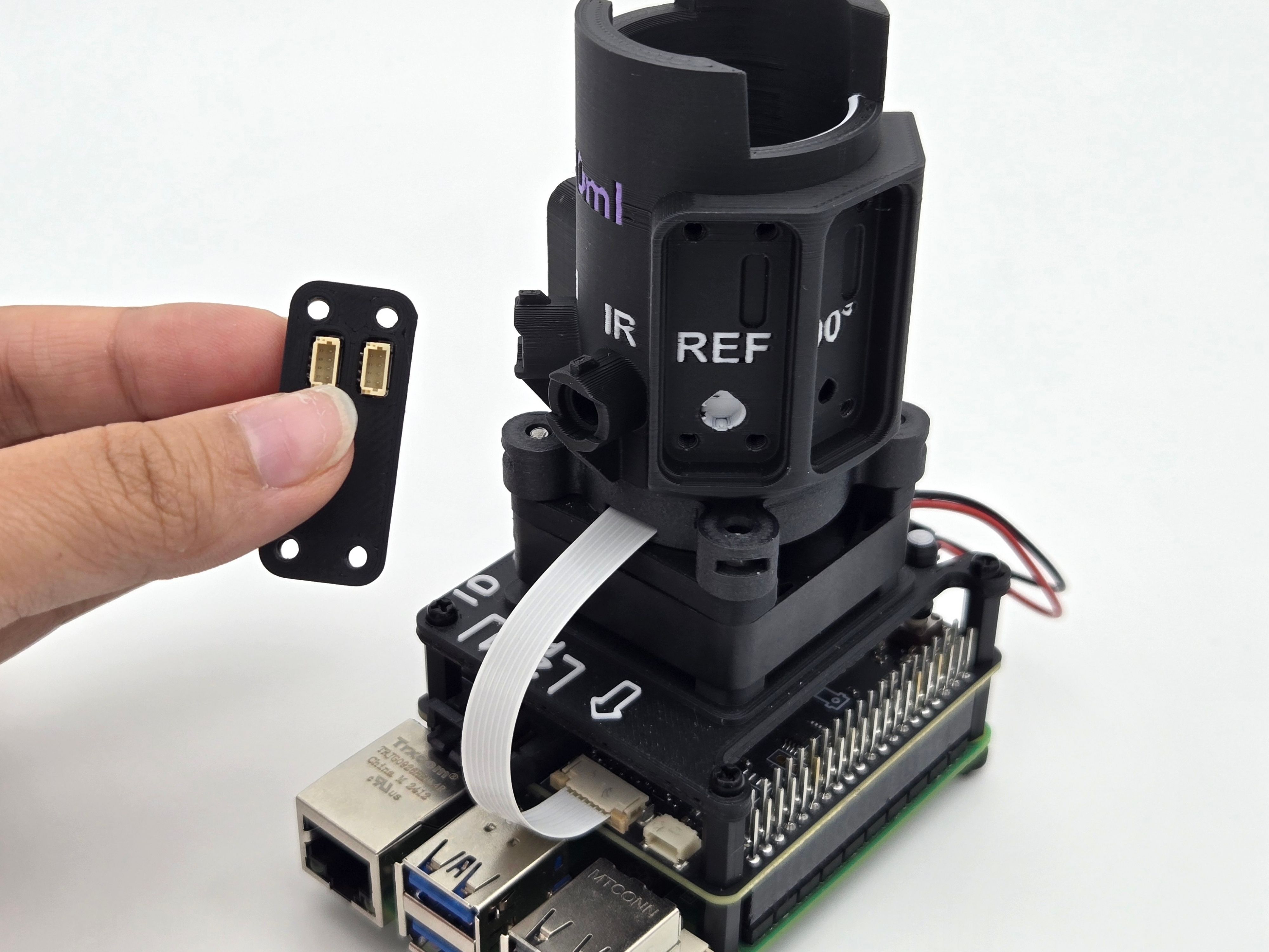 - Locate the Stemma-QT connector on the HAT and connect the 100mm Stemma-QT wire, with the yellow wire furthest from the heater flat flex cable.