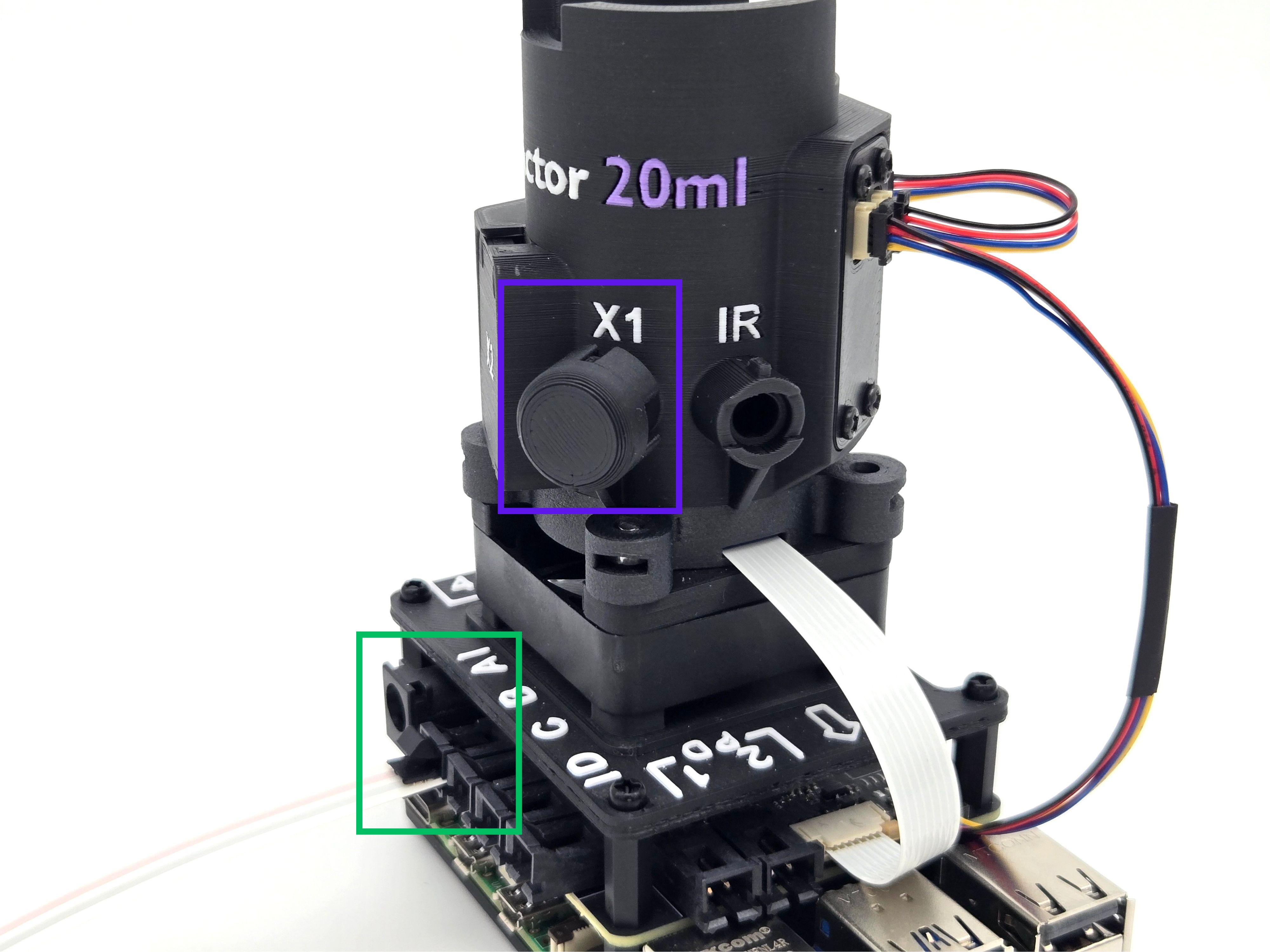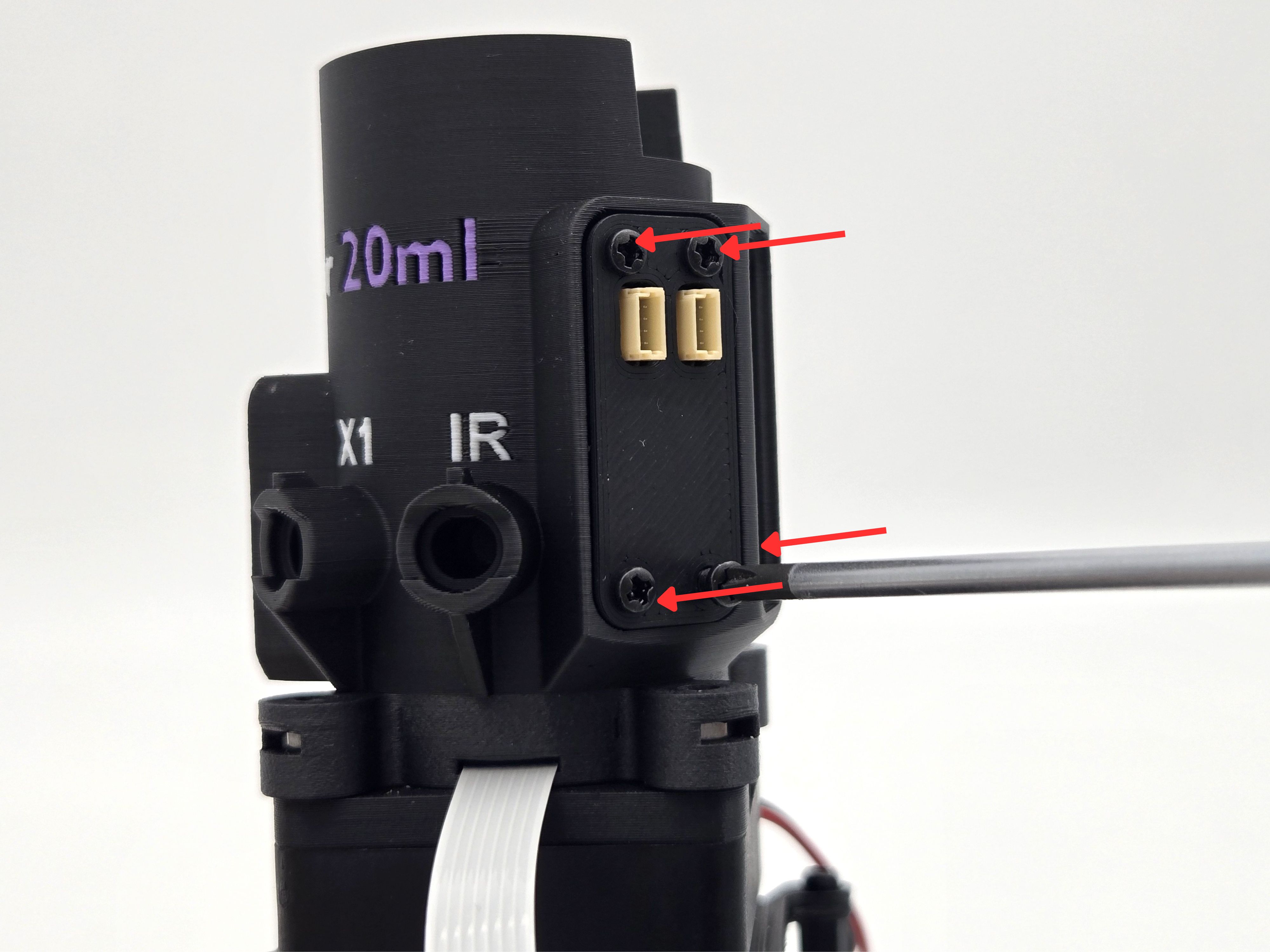- With the tan connectors towards the top, place the eye-spy into the REF socket on the vial holder. Secure it with 4x 8mm screws.