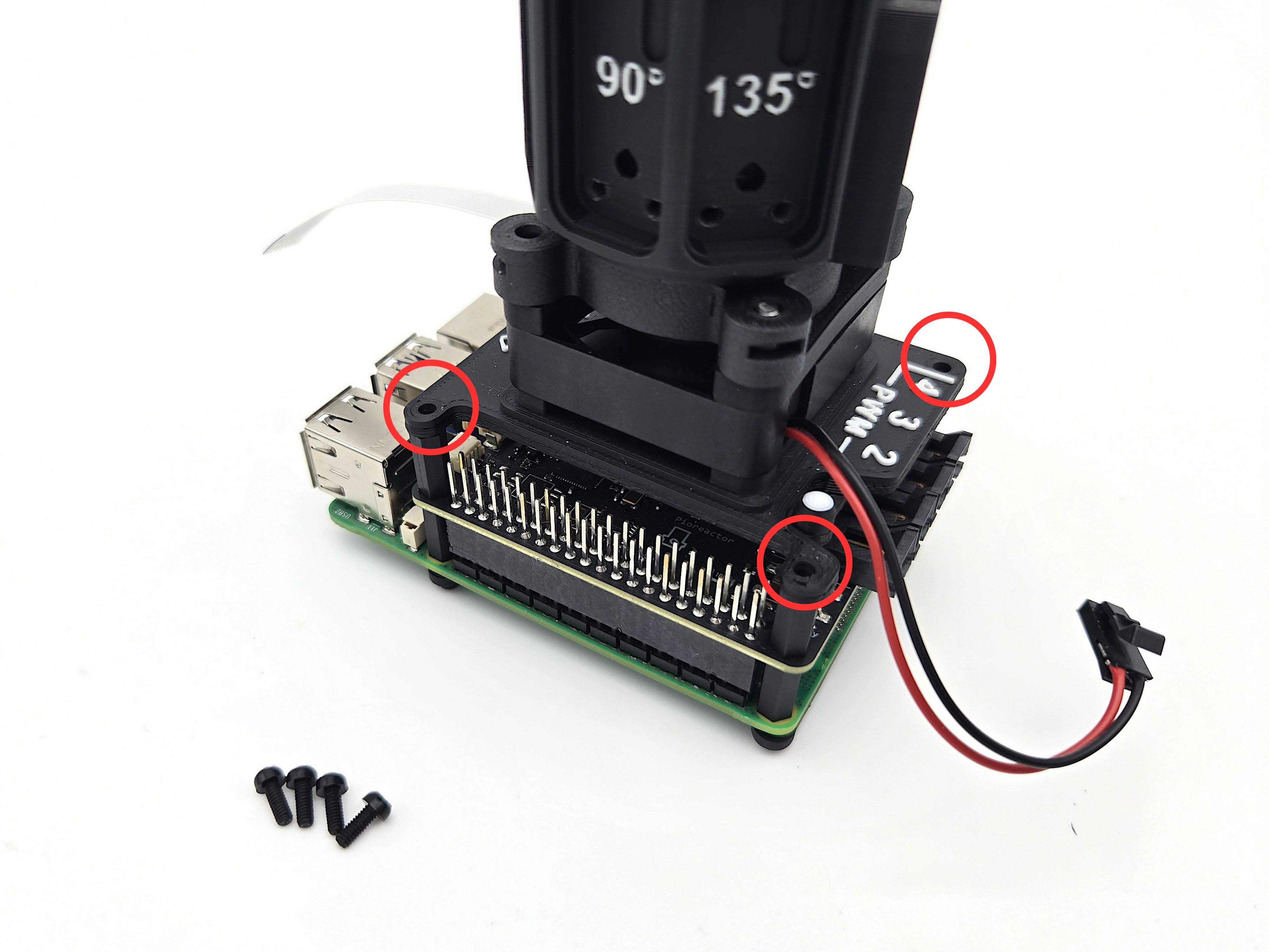 - Using the M2.5 6mm screws, attach the top and bottom pieces in each corner.