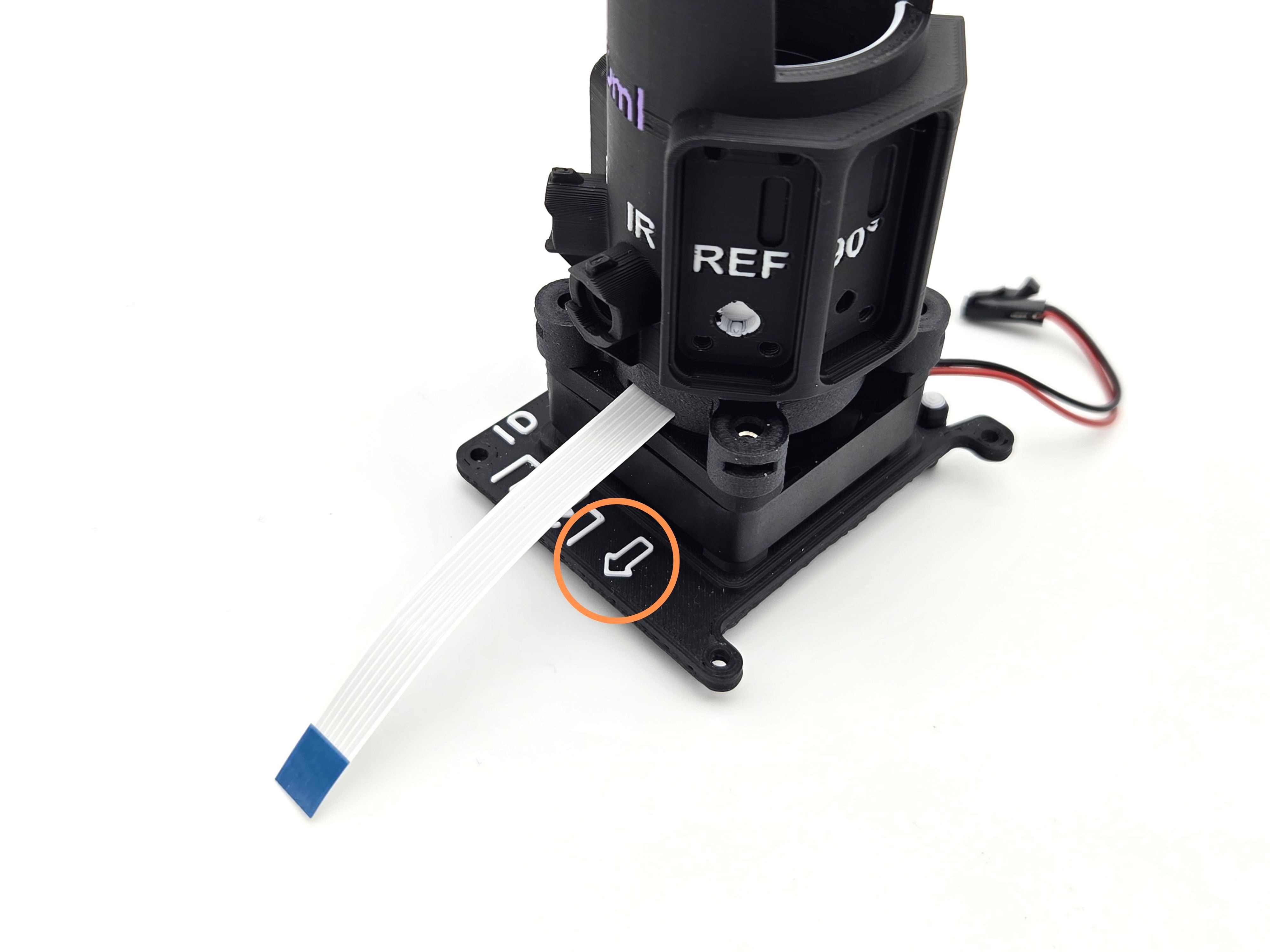 Place the vial holder on top of the four ends of the 30mm screws. The screw ends should fit into four holes on the bottom of the vial holder. The flat flex cable should follow the arrow on the faceplate.