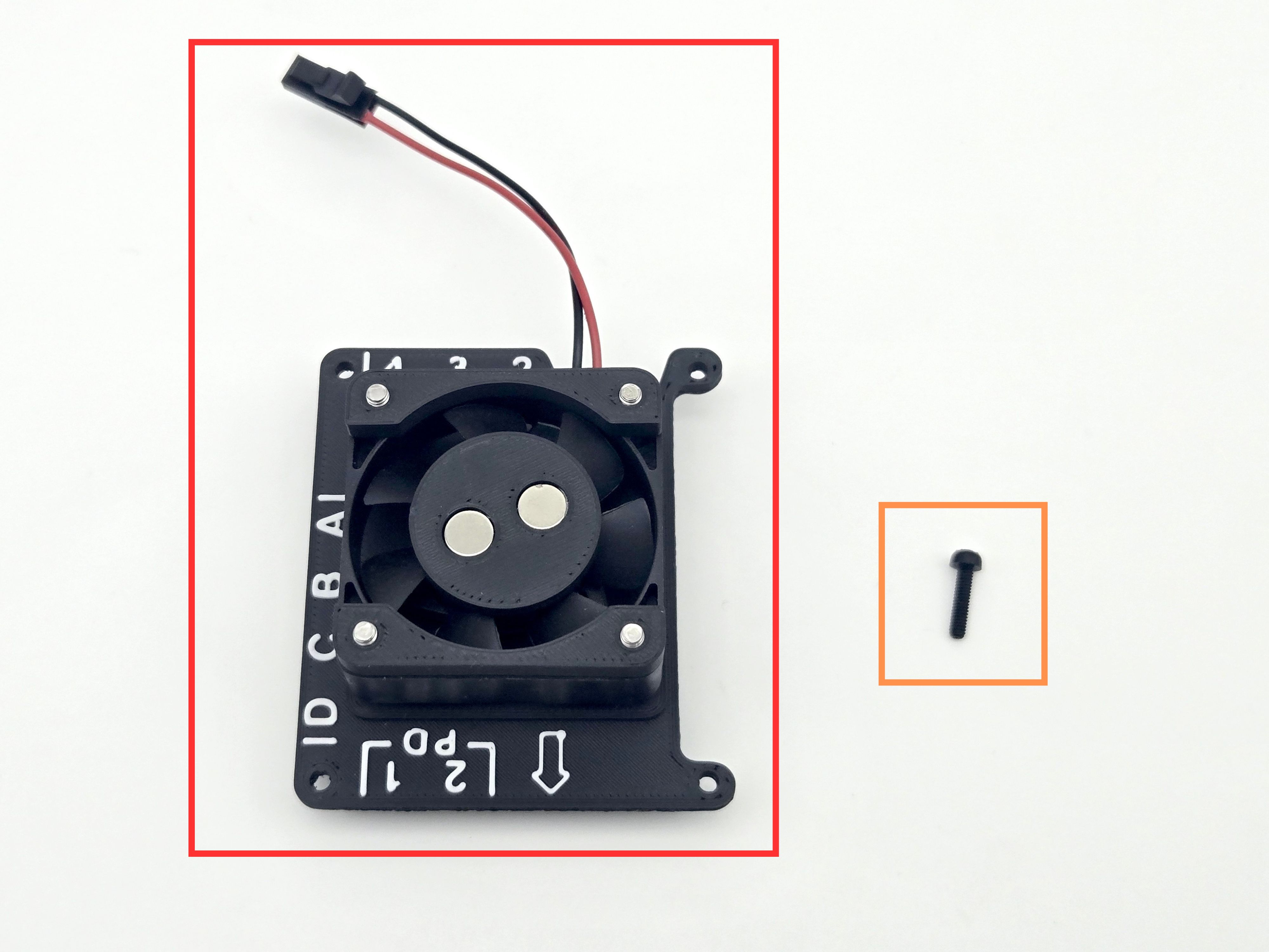 - Fan and top faceplate (will have 4x 30mm screws in it)