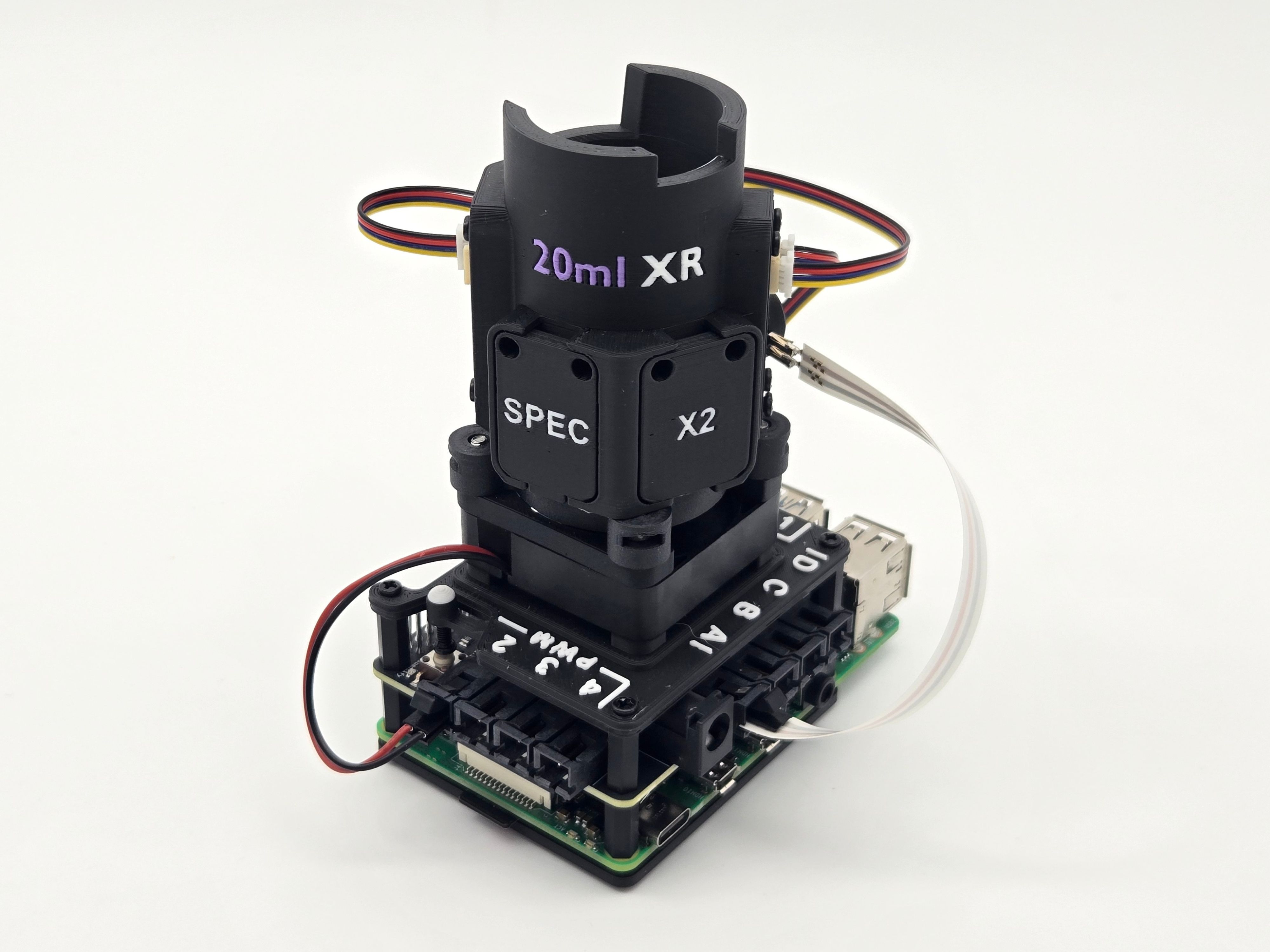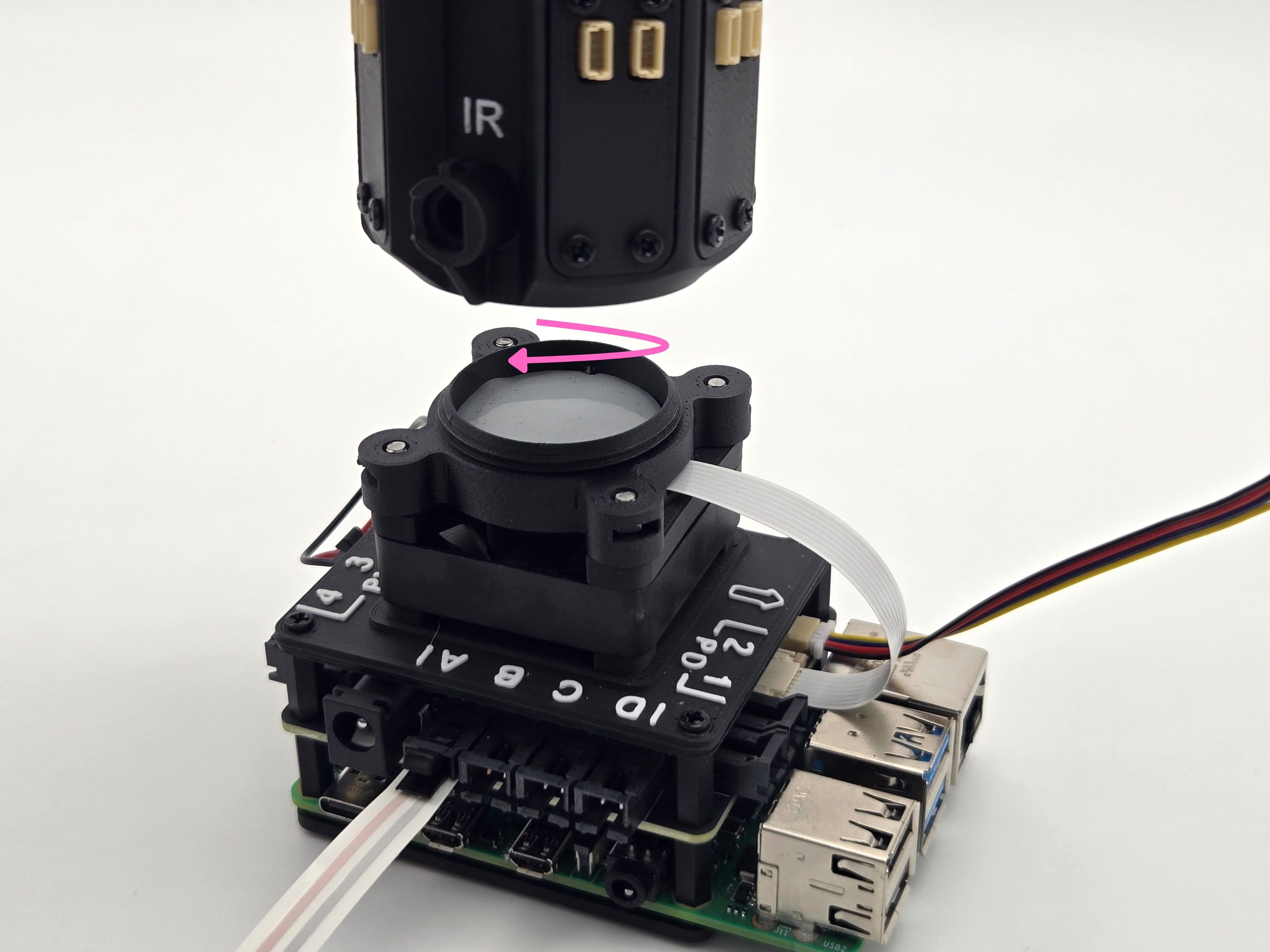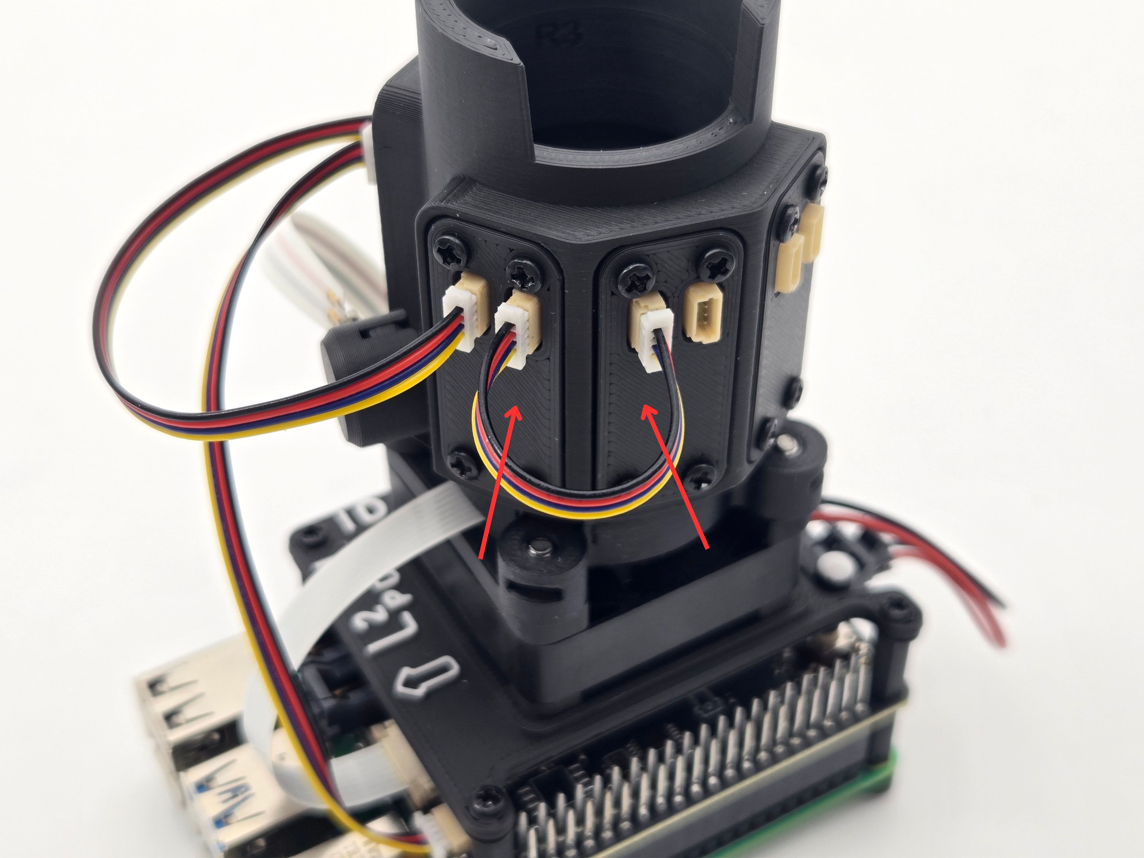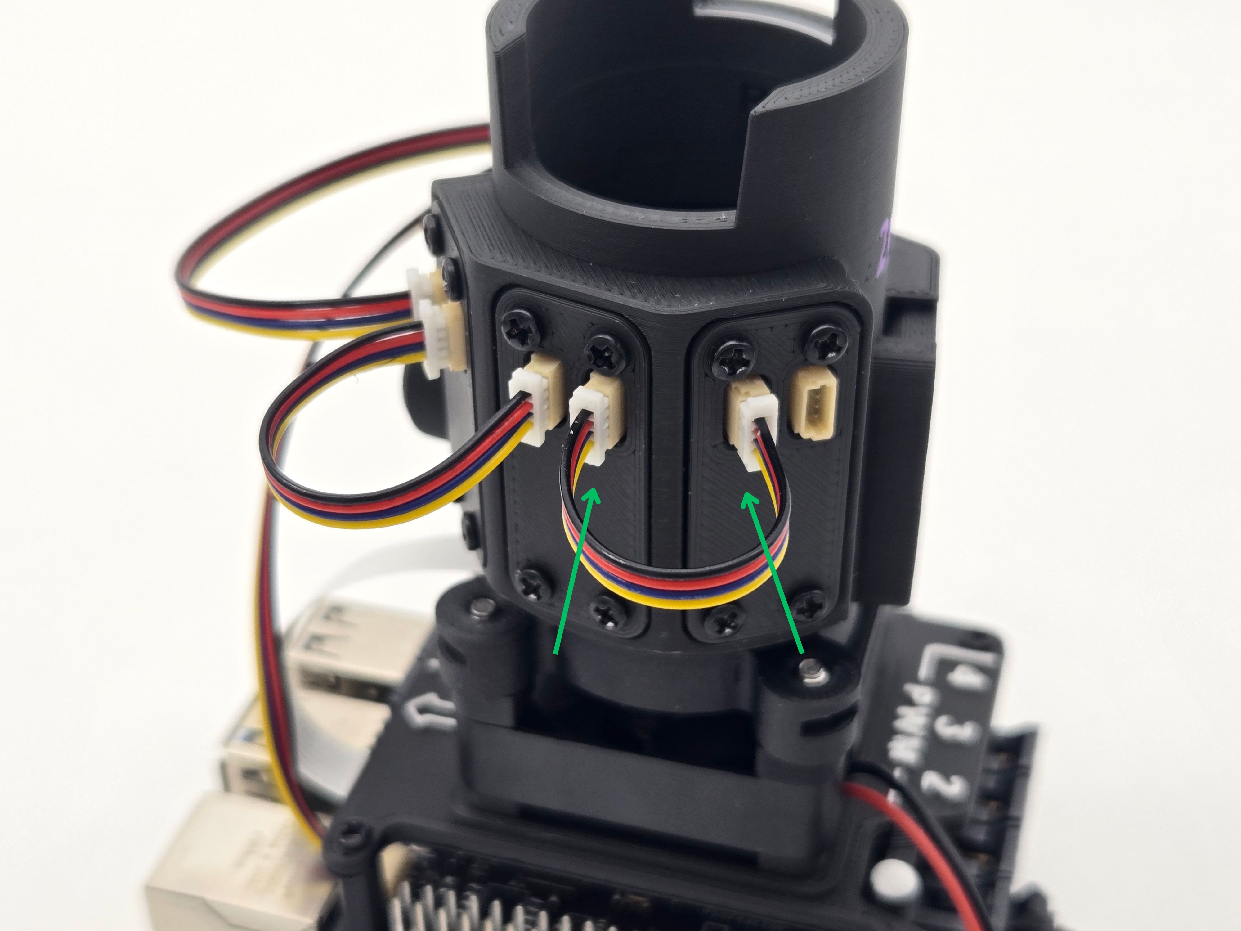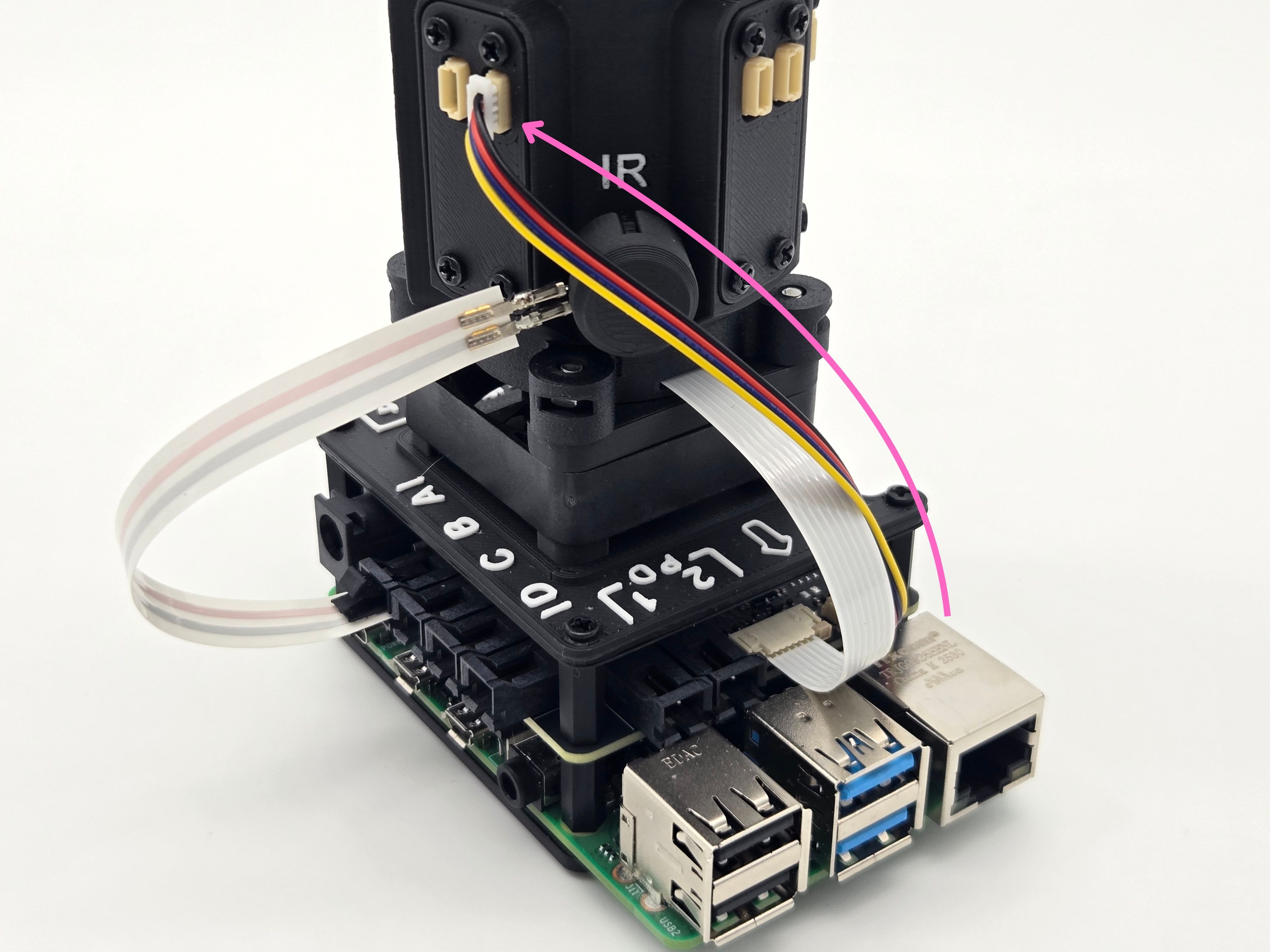 - A 100mm STEMMA-QT wire should be still connected to the HAT. Connect the other end to the leftmost, 45 degree eye-spy. Pay attention to the wire orientation: the yellow wire should be at the bottom.