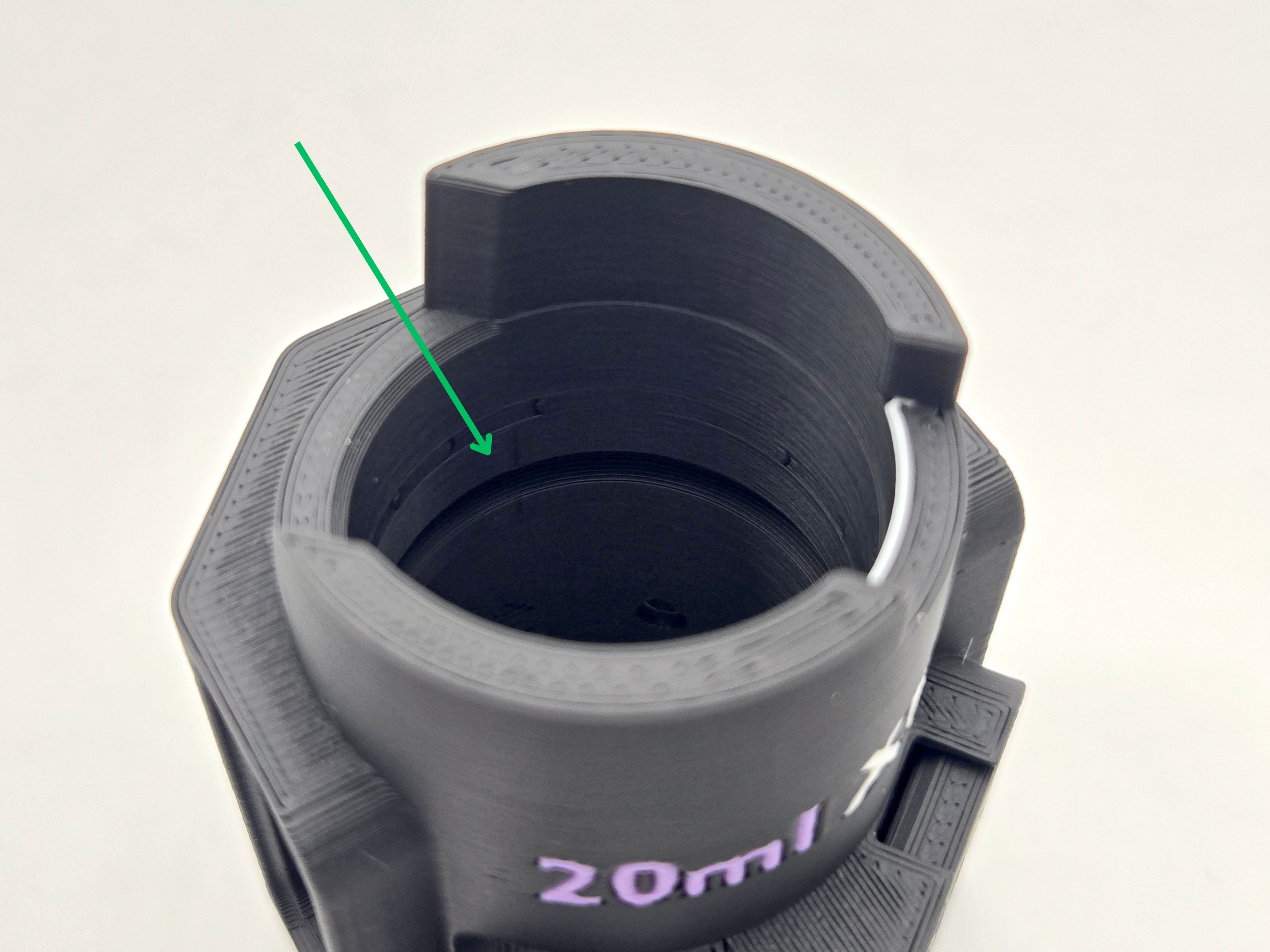 - The XR top vial holder has a groove within the body where the #024 O-ring sits. Carefully insert the O-ring using your fingers. Make sure to not twist the O-ring.