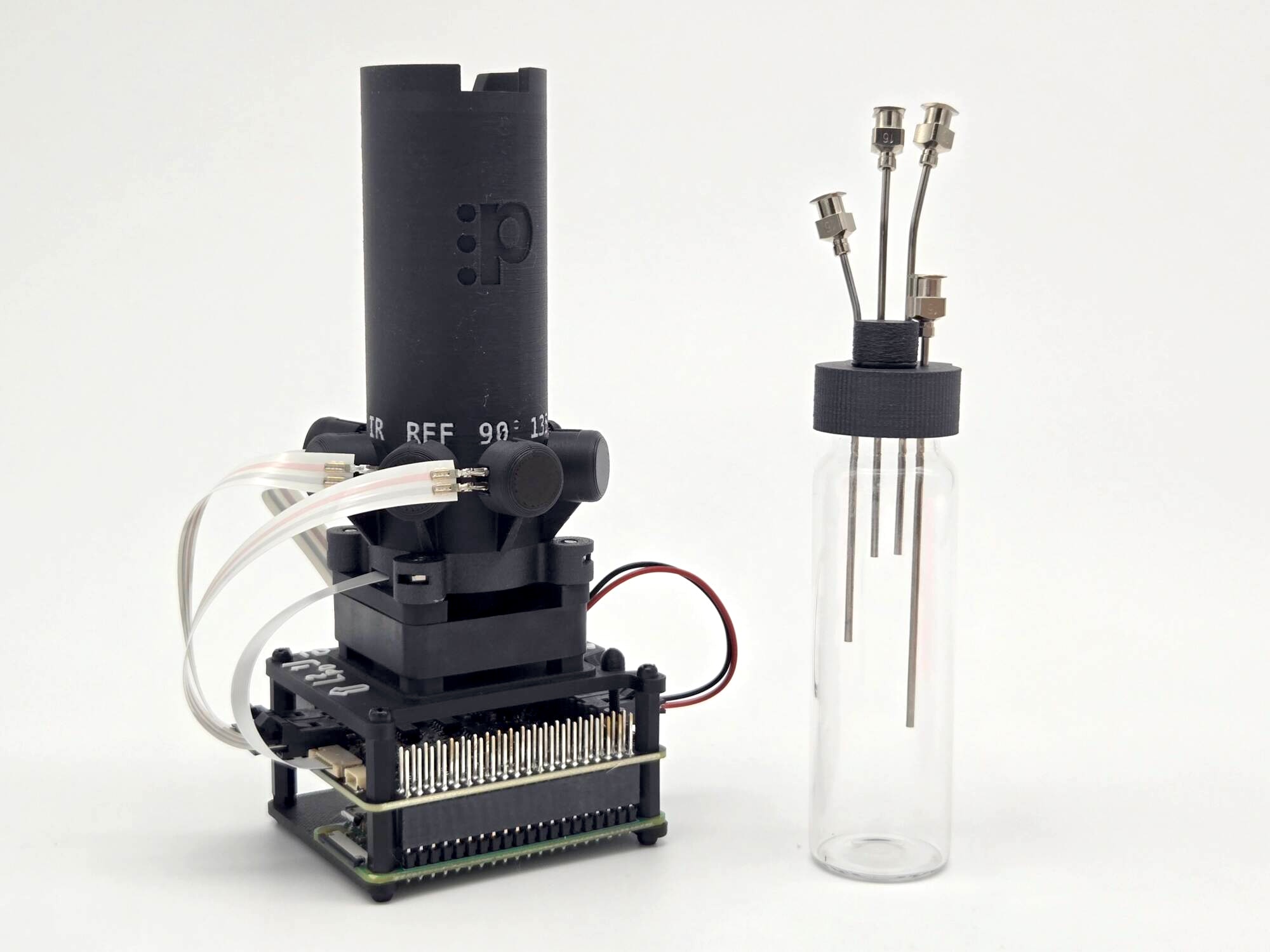 - With the tab of the black connector pointed left, insert the bulb of one PD cable into the pocket labeled REF. See image.