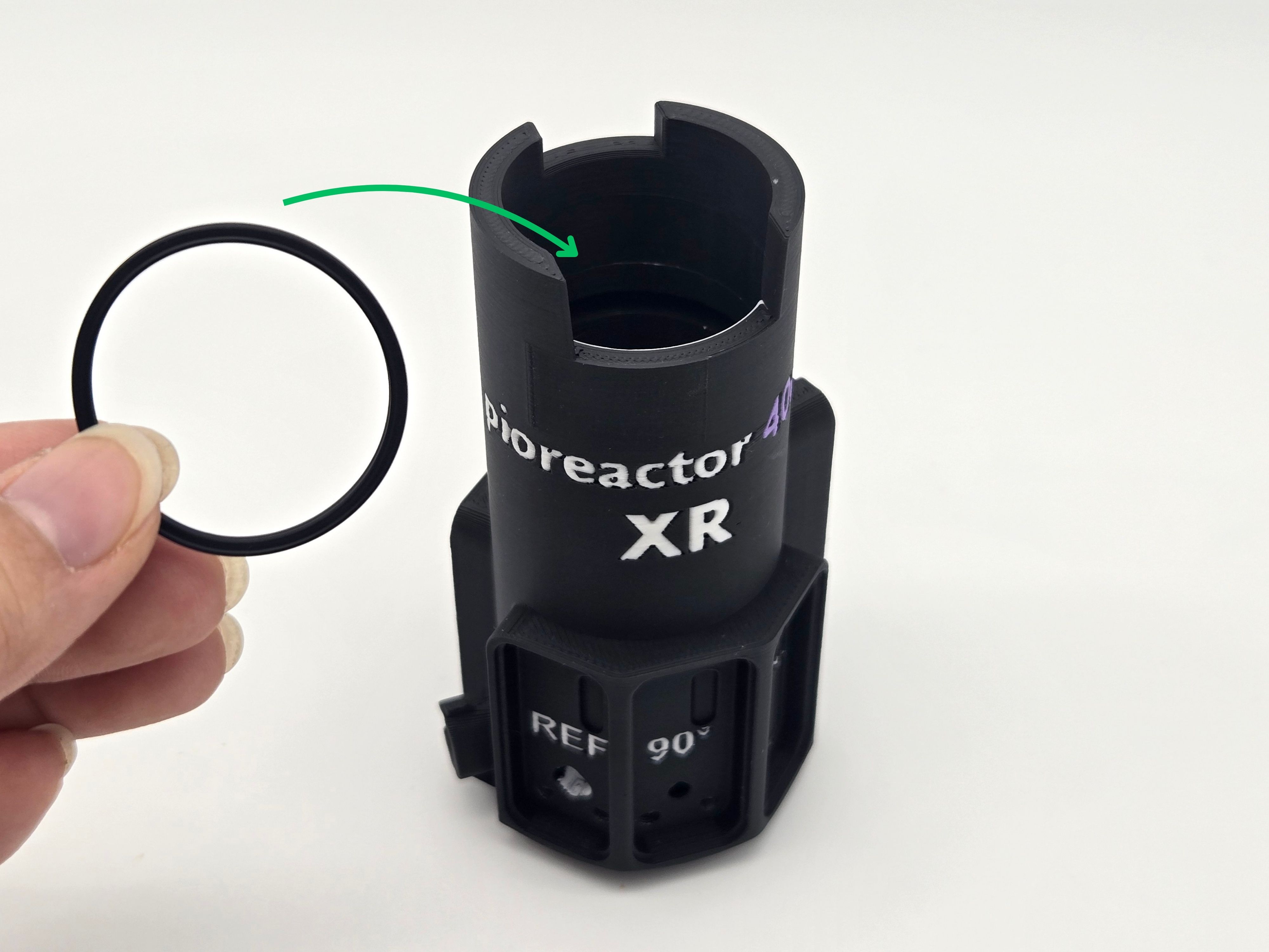- The XR top vial holder has a groove within the body where the #024 O-ring sits. Carefully insert the O-ring using your fingers. Make sure to not twist the O-ring.