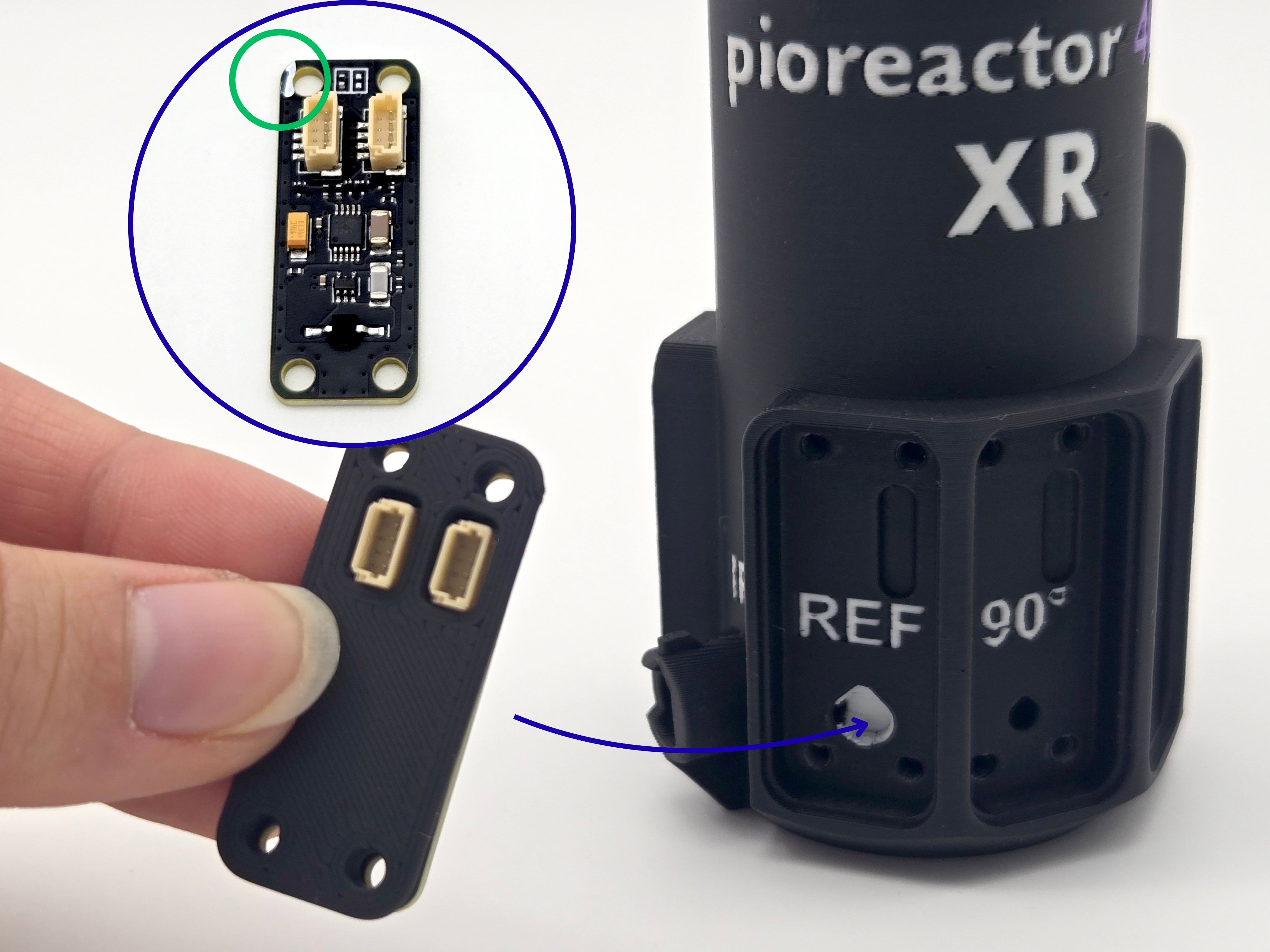 Use a 50mm STEMMA-QT wire to connect the REF eye-spy to the 90 degree eye-spy.