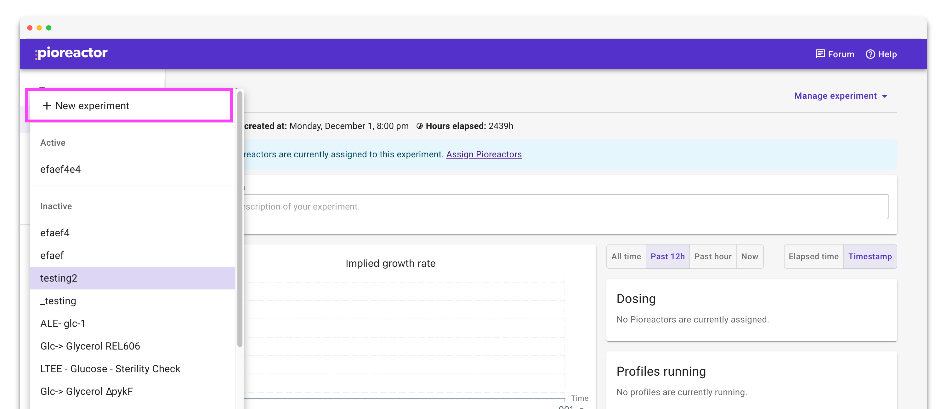 - After observing that the optical density looks normal on the Experiment Overview page, Growth rate